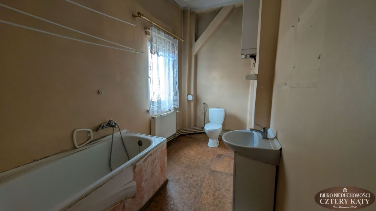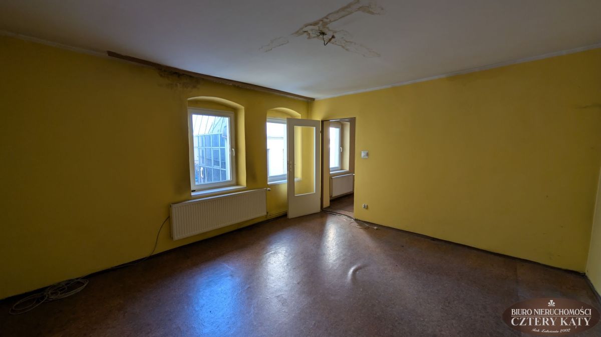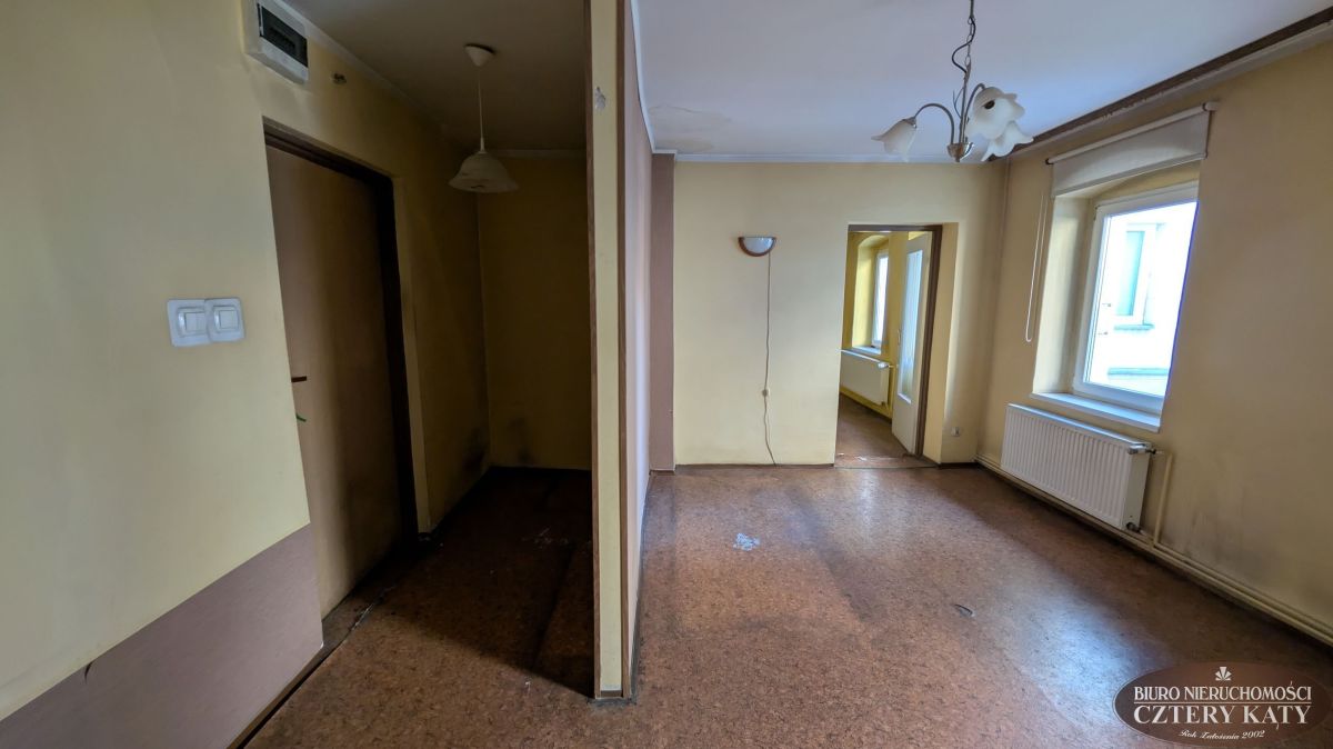 Biuro Nieruchomości Cztery Kąty ma do zaoferowania mieszkanie położone w centrum Jeleniej Góry. Lokal położony jest w kamienicy na 1 piętrze budynku i składa się z: 2 pokoi, kuchni, łazienki z wc o powierzchni 56,10m2. Do lokalu przynależą 2 pomieszczenia gospodarcze o powierzchni 4,80m2. Lokal jest do remontu i własnej aranżacji. Ogrzewanie piec gazowy 2 funkcyjny. Okna PCV. Instalacja elektryczna po wymianie. Dach po remoncie.