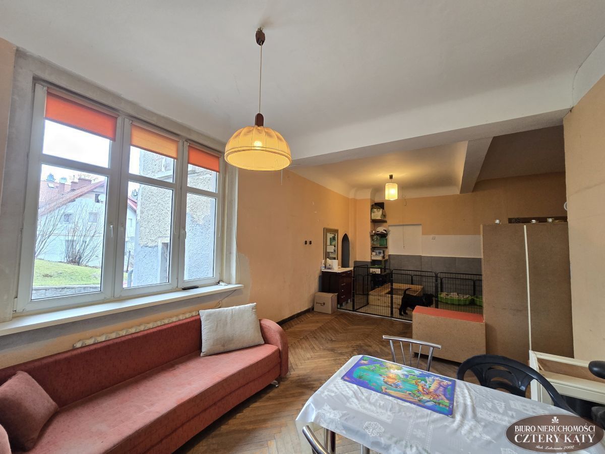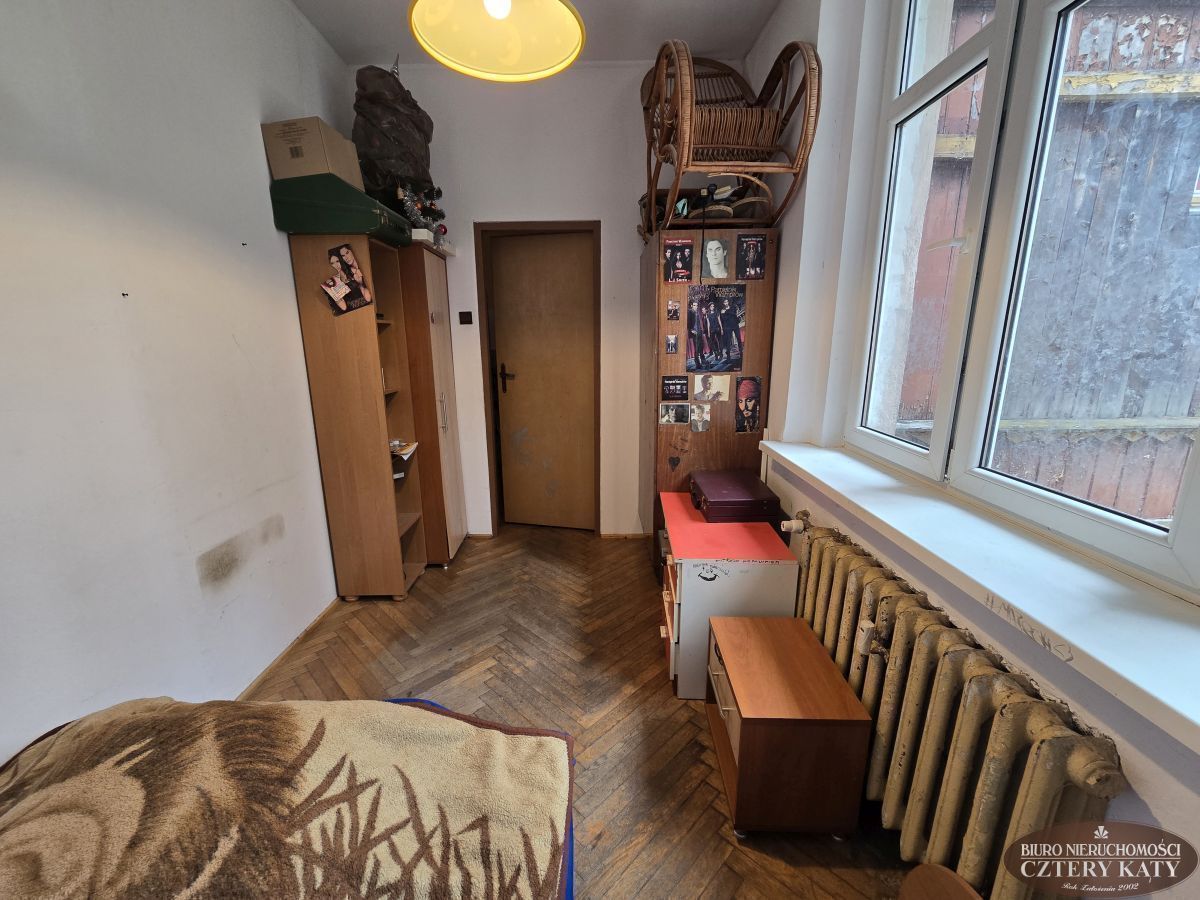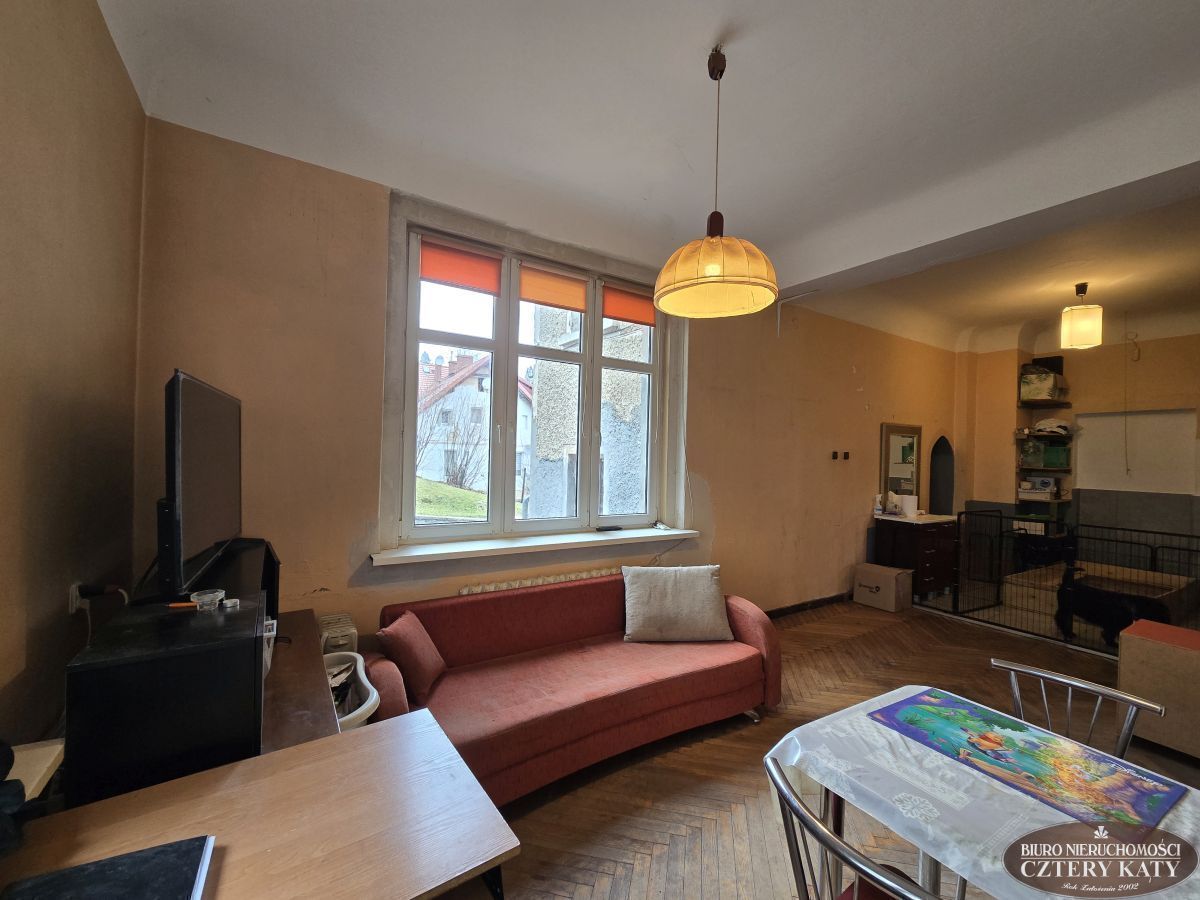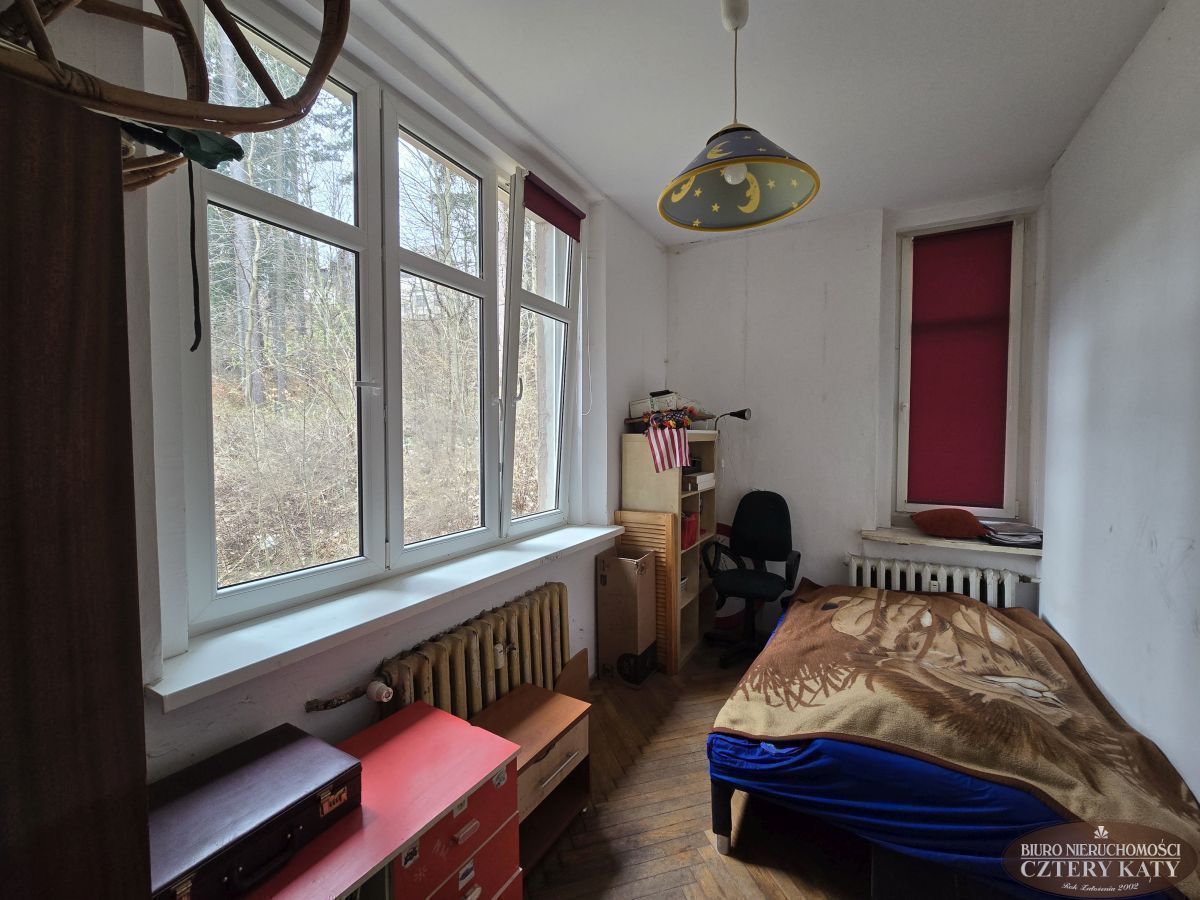 Biuro Nieruchomości Cztery Kąty prezentuje duże mieszkanie położone w centrum miasta Karpacz. Lokal położony na wysokim parterze budynku i składa się z: 2 pokoi, kuchni, łazienki z wc, przedpokoju, werandy ( która obecnie jest pokojem), oraz pomieszczenia gospodarczego o łącznej powierzchni 90,70m2. Do mieszkania przynależy dodatkowo w.c. na półpiętrze oraz piwnica. Łączna powierzchnia lokalu to 95,40m2. Lokal jest do remontu. Duża otwarta przestrzeń daje duże możliwości do nowej aranżacji. Mieszkanie można podzielić na dwa mniejsze z osobnymi wejściami do lokali bez straty powierzchni na dodatkowe przedpokoje.